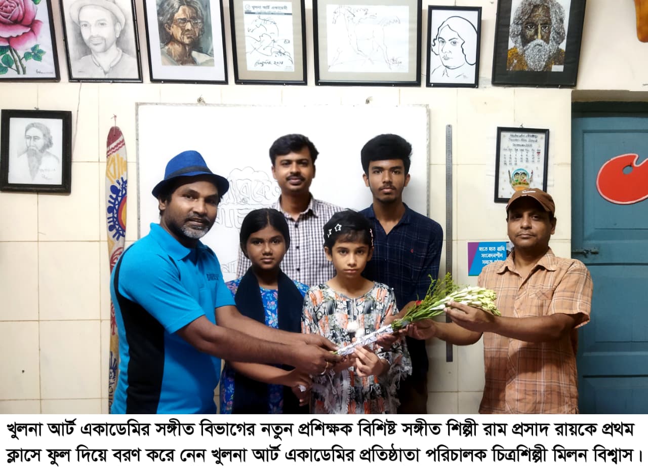 খুলনা আর্ট একাডেমি একটি সাংস্কৃতিক প্রতিষ্ঠান ইকবাল নগর স্কুলের পূর্ব পাশে ৩৬ আয়েশা কটেজ এর নিচতলায় অবস্থিত। ৪ঠা জুলাই সকাল ১০ঘটিকার সময় সঙ্গীত বিভাগটি নতুন করে চালু করেন।প্রতিষ্ঠানের কার্যক্রম ছবি আঁকা ,বিশ্ববিদ্যালয় ভর্তি ইচ্ছুকদের জন্য চারুকলা ভর্তি সহায়ক এবং আবৃত্তি, সংগীত, ভালো হস্ত লিখন, এই উক্ত বিষয়গুলি নিয়ে খুলনায় সম্মানের সহিত ধারাবাহিক ভাবে সুনাম অর্জন করে আসছেন দীর্ঘ বছর যাবৎ।২০২৫ সালে সংগীত বিভাগের কার্যক্রম স্থগিত ছিলো। আজ থেকে পুনরায় সংগীত বিভাগ চালু করা হলো। আজ থেকে বিশিষ্ট সঙ্গীতশল্পী রামপ্রসাদ রায় সংগীত প্রশিক্ষণের দায়িত্ব গ্রহণ করেন এসময় খুলনা আর্ট একাডেমির প্রতিষ্ঠাতা পরিচালক চিত্রশিল্পী মিলন বিশ্বাস ফুল দিয়ে বরণ করে নেয় প্রতিষ্ঠানের শিক্ষার্থীদের সাথে নিয়ে।এসময় উপস্থিত ছিলেন সুব্রত কুমার মন্ডল জাতীয় কবি কাজী নজরুল ইসলাম বিশ্ববিদ্যালয় থেকে অনার্স মাস্টার্স সম্পন্ন করে শিল্পগুরুর সঙ্গে দেখা করতে আসেন। আরো উপস্থিত ছিলেন সঙ্গীত বিভাগের শিক্ষার্থীরা সৌহার্দ্য বিশ্বাস, সম্প্রীতি বিশ্বাস,আরোহী মন্ডল।এ সময় চিত্রশিল্পী মিলন বিশ্বাস সঙ্গীতশিল্পী রামপ্রসাদ রায়কে বলেন আজ থেকে এই প্রতিষ্ঠানের শিশু শিল্পীদের সঙ্গীত চর্চার মাধ্যমে সুনাম অর্জন করবেন। আমরা এমনটা প্রত্যাশা করছি আপনার কাছ থেকে